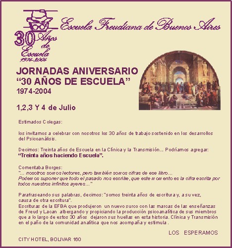 La Escuela Freudiana de Buenos Aires celebra su 30° Aniversario.